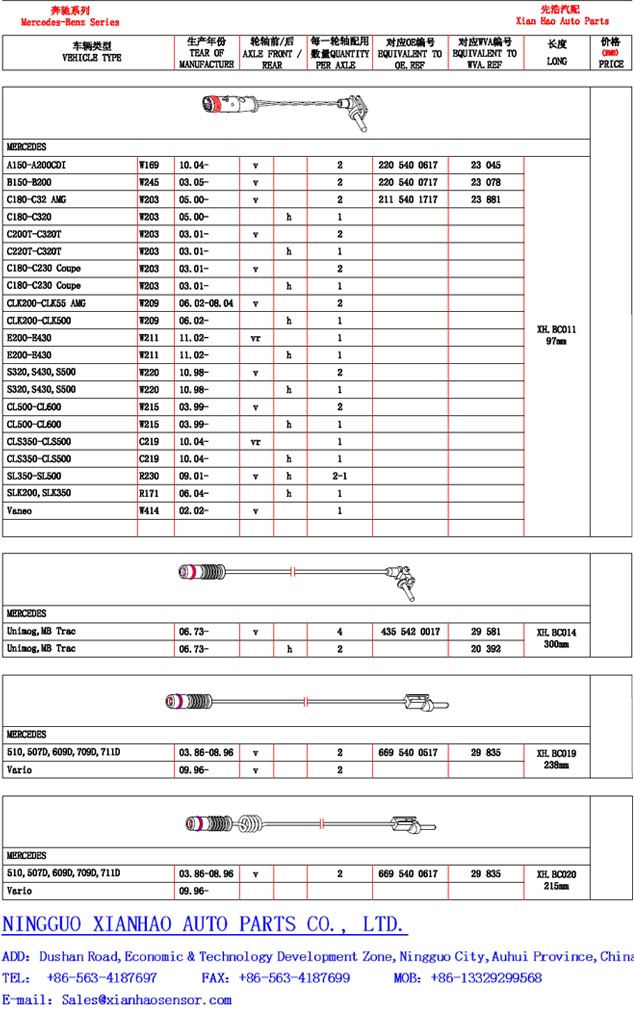 主营汽车刹车片传感器